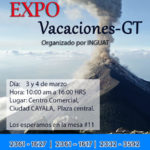 Expo Vacaciones-GT Día: 3 y 4 de marzo Hora: 10:00 am a 16:00 HRS Lugar: Centro Comercial, Ciudad CAYALA, Plaza central. Los esperamos en la mesa #11