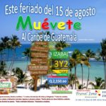 Cruceros a Izabal En la playa, bajo el sol y sobre el mar de izabal Escápate este feriado del 15 de Agosto al caribe Salida: Sábado 13 de Agosto, 3 días y 2 noches con todo incluido Regreso: Lunes 15 de Agosto Más información a los teléfonos: 2361-1627, 2361-1617, 2332-3592